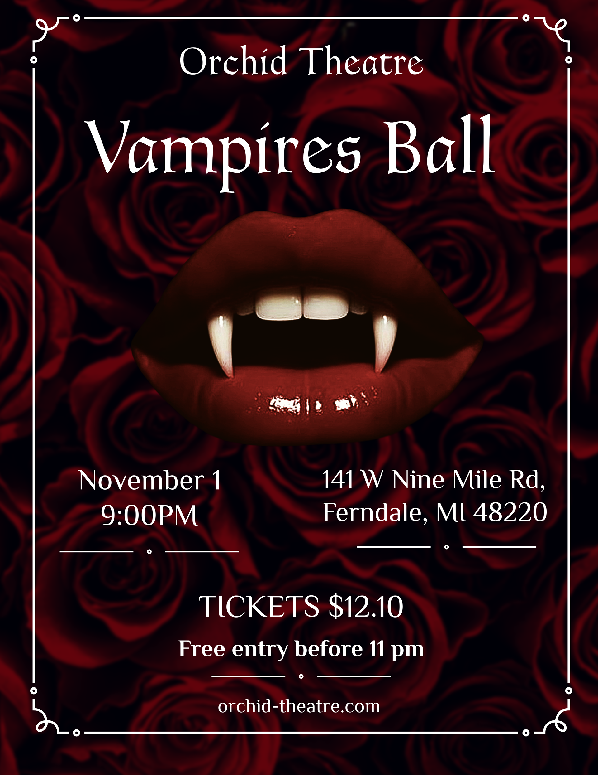 I designed a flyer for the Vampires Ball at the Orchid Theatre as part of a course I attended.
